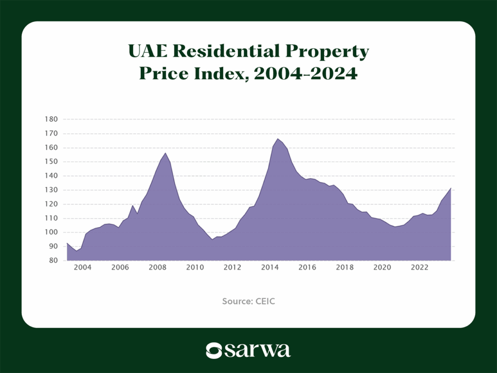 Similarly, the compounded annual growth rate (CAGR) of the UAE residential property index between 2004 and 2024 is 1.82%, according to data from CEIC, a resource for global economic data.