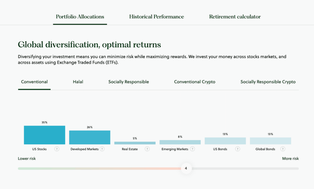 Sarwa also creates specific portfolios for Halal and impact (socially responsible) investors.