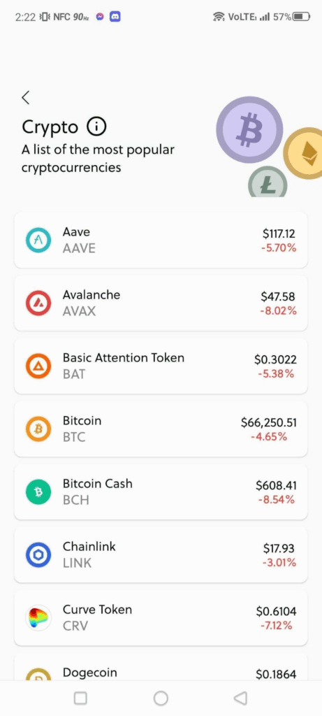 Sarwa provides you with access to the top assets in the crypto market, including Bitcoin, Ethereum, Ripple (XRP), Dogecoin (DOGE), Polkadot, Cardano, Chainlink, among others: